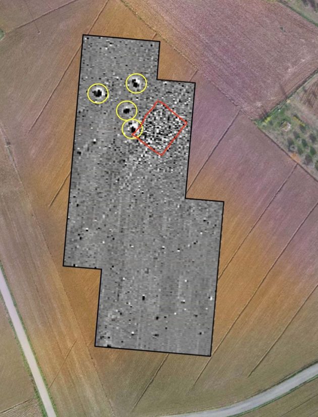 Excavations at Località Ranciano took place in 2022. Located a few kilometers to the southwest of Castiglione del Lago, the site was long known to local residents from surface finds and the discovery of a bronze statuette of Eros holding a sword (see fig. 1), now in the collections of the new archaeological museum in Castiglione del Lago (opening soon). Prior to the 2022 excavations, a magnetometry survey revealed the presence of four anomalies that appeared to be kilns (Fig. 2).