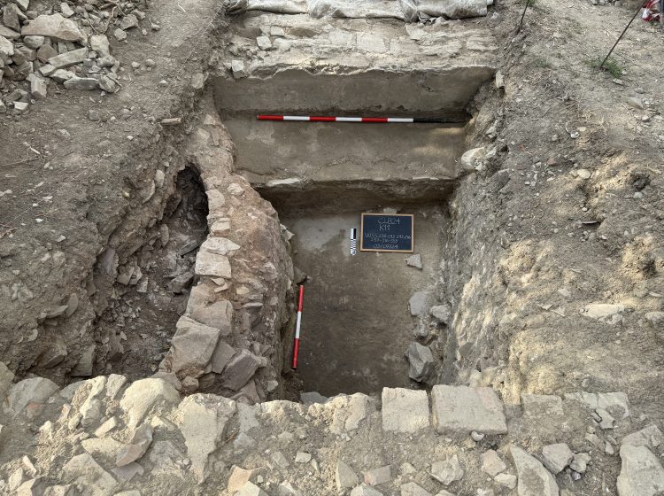 The second terrace wall, which forms the north side of Room A, is preserved to a height of approximately 1.9 meters. On the level above that wall, excavations in 2023 and 2024 revealed an extensive surface comprised of selciato, that is, dark-grey cobbles. The current hypothesis is that the pavement forms a courtyard, or intermediary level of the Roman complex, marking the transition from the bath area on the lower level to residential quarters on the upper level. As of 2024, however, the northern limit of the pavement has not been determined. In 2025, the team plans to open a new excavation area further to the north to explore that hypothesis.